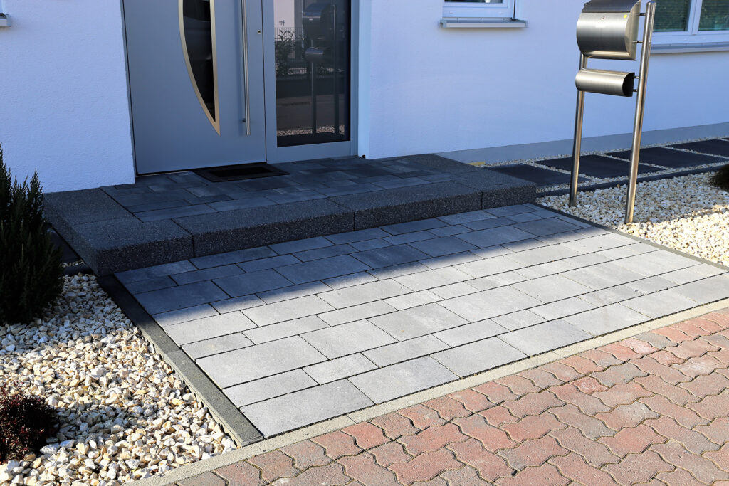 - Präzise Verlegearbeiten von Pflaster- und Terrassensteinen sowie Randsteinen
